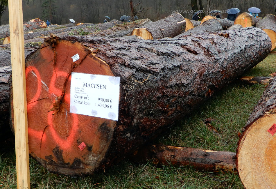 Najdražji hlod na dražbi je prišel iz Bosne in Hercegovine. Gre za hlod oreha, ki je dosegel ceno 16.506,65 €. Sledi mu hlod gorskega javorja za 13.351,99 € in hlod oreha za 12.212,68 €. Tudi ta dva hloda nista iz Slovenije. Na četrtem mestu pa je hlod doba, ki je zrasel v naših gozdovih na področju Mislinje in je dosegel ceno 11.948,08 €.