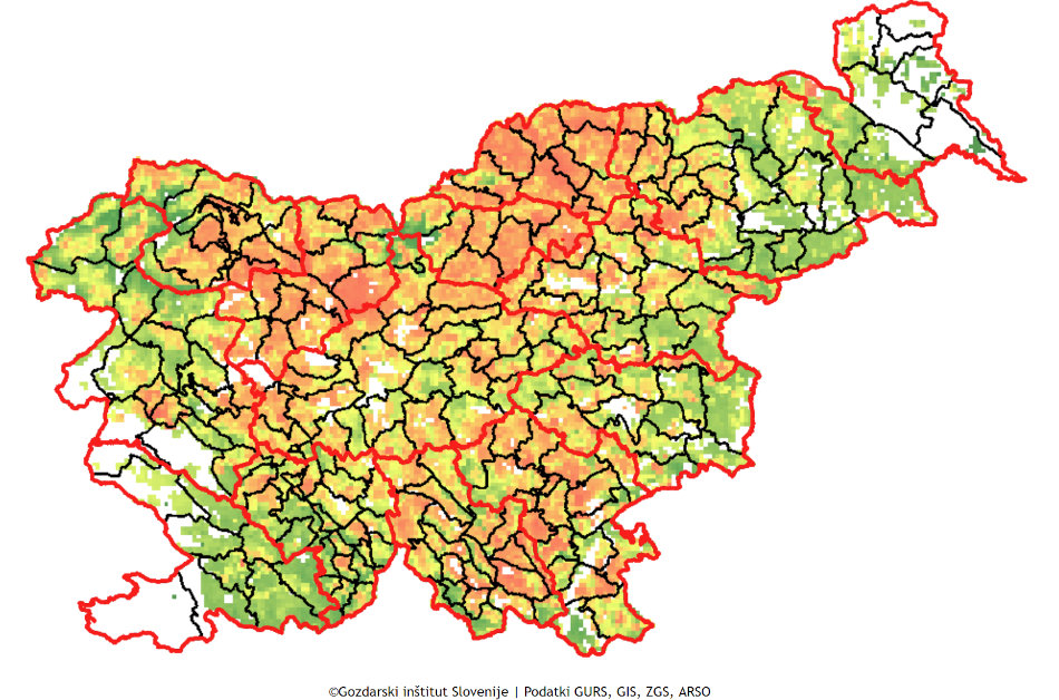 Za lažje informiranje in odločanje, kje je treba bolj temeljito preverjati smreke, so na Gozdarskem inštitutu pripravili zemljevid, kjer je mogoče grafično videti ocenjene napovedi za posamezne modelske celice.